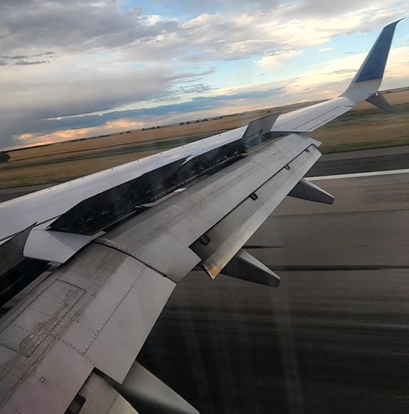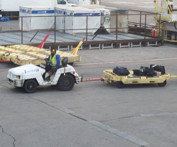 Fortunately the flight attendants ask everyone to let me by even before the door is open, and the next plane is only 10 gates away. I do make it. And, as I settle in, looks like the luggage does too. That's the kayak at the front of the cart. The United app confirms both bags are loaded.