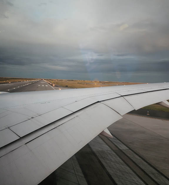 The next plane is a 787 and I have a similar vantage point on the wing (intentionally). Cool to compare. The tinting windows act as their own filter. There is a cool lightning storm that can be seen on departure, I've put a short video on Instagram. Even in economy, the food is actually ok and the wine is free. I binge watch what seems like a dozen episodes of Rick and Morty (I find the Rick character very relatable), then try to sleep with only marginal success.