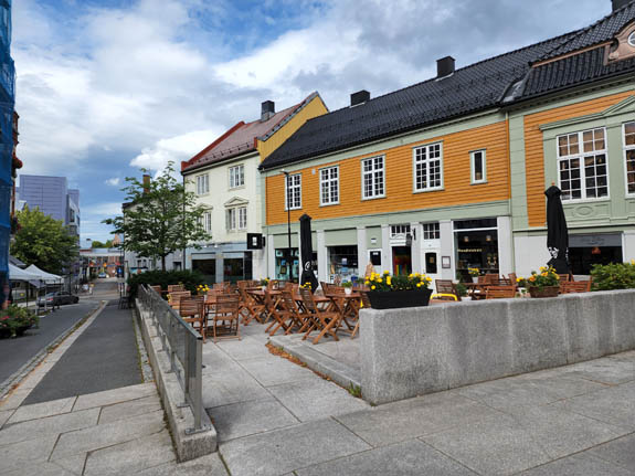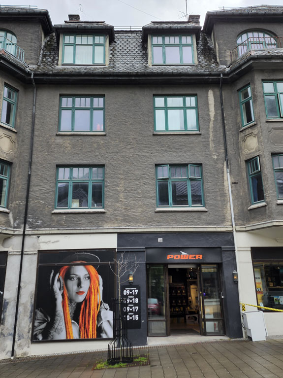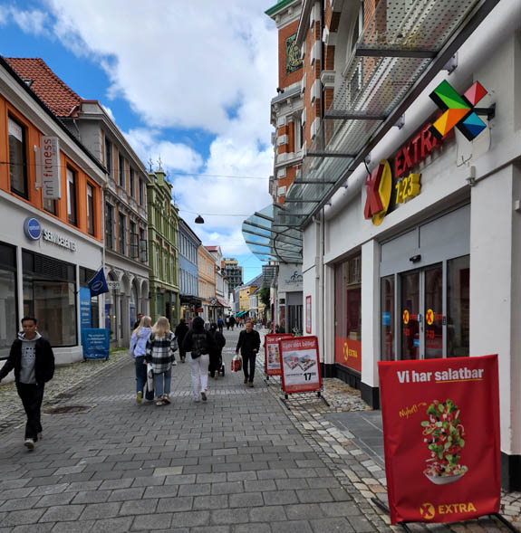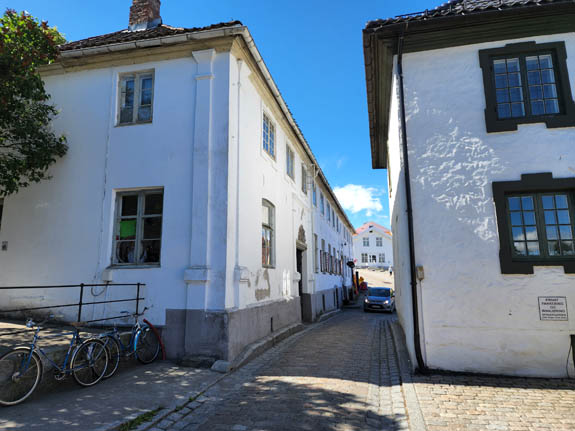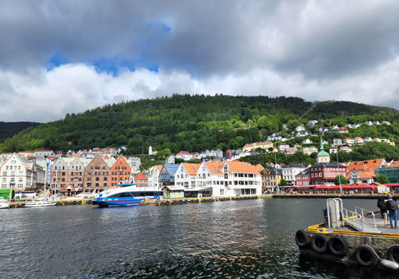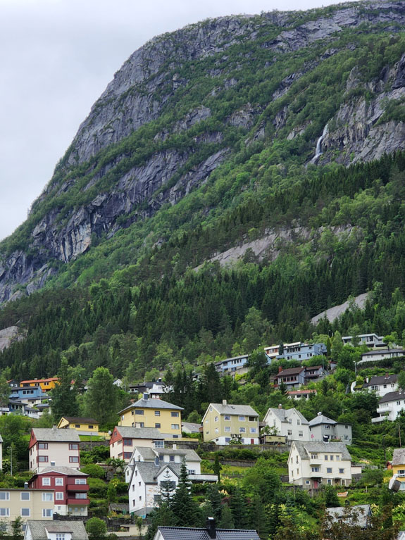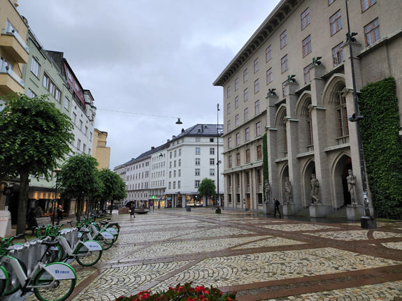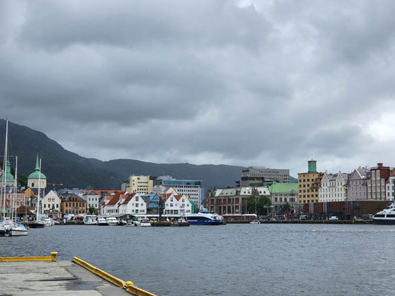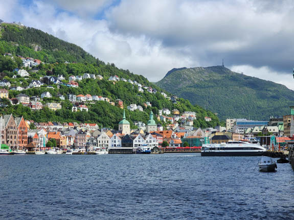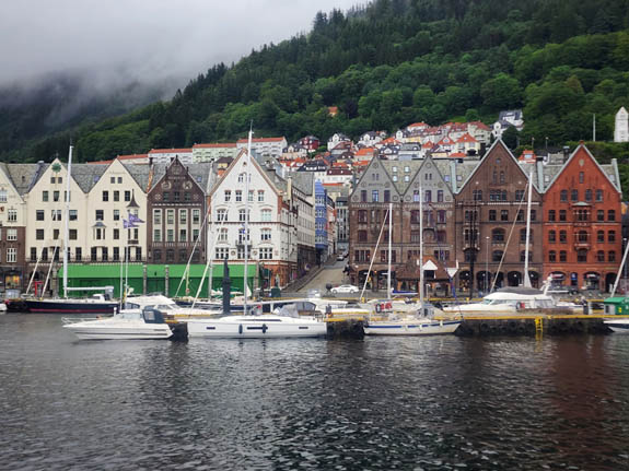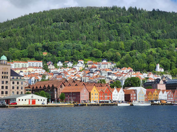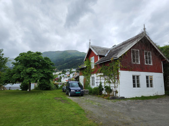 I've been warned about speeding here because the fines are very heavy. So generally I'm careful to stay at or under the limits, which change frequently. Google warns of camera locations with a chime. Still, I may have missed a transition from 80km/h to 60. I guess if I got fined it'll show up on rental car bill. As will the electronic tolls which happen at many spots along the way. It will be what it will be. I didn't know what to expect in Bergen, and was very impressed on arrival. The place is cool and beautiful, staying within the apparent style guide but with a unique character. The blue house is an exception of sorts, but isn't really. Certainly stands out.
