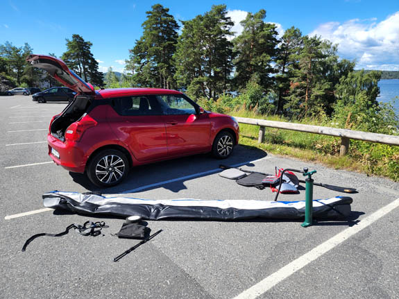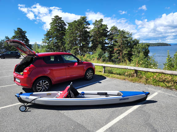 Then it's time for my first paddle of the trip. I found a parking lot which has a convenient access to the water and where I can leave the car for a while.
