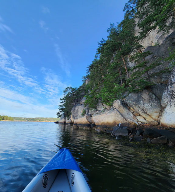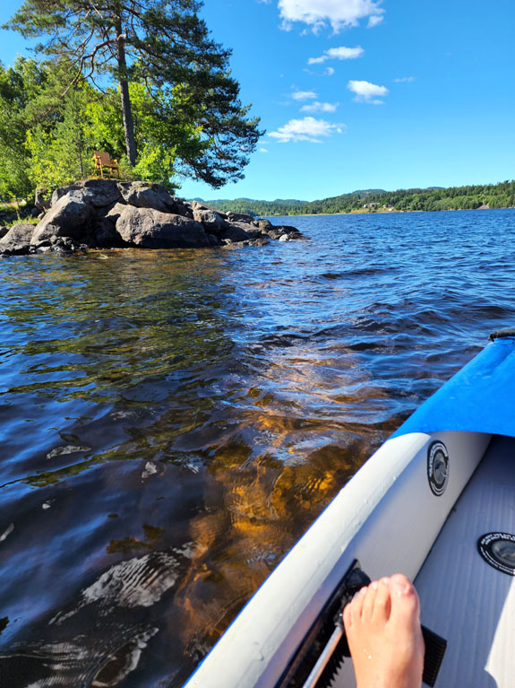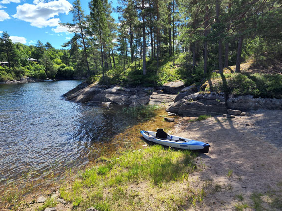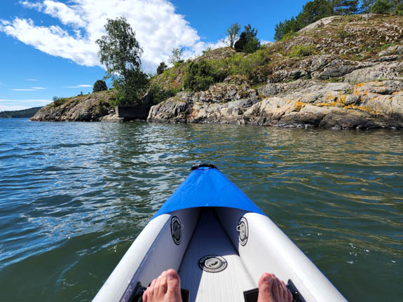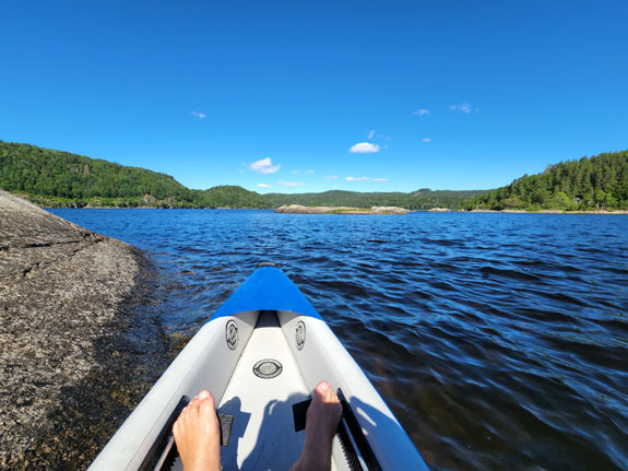 We shall see what tomorrow brings. 7/12 Main thing I did today was a 3+ hour paddle on the fjord about 45 minutes south of Son. Paddled all the way around a fairly large island. It got a bit choppy on the fjord side, to the point that I started wondering whether I should be doing this. But ended up not a big deal and all is well that ends well. The scenery is different but also similar to what I've posted before, so only a few pix.