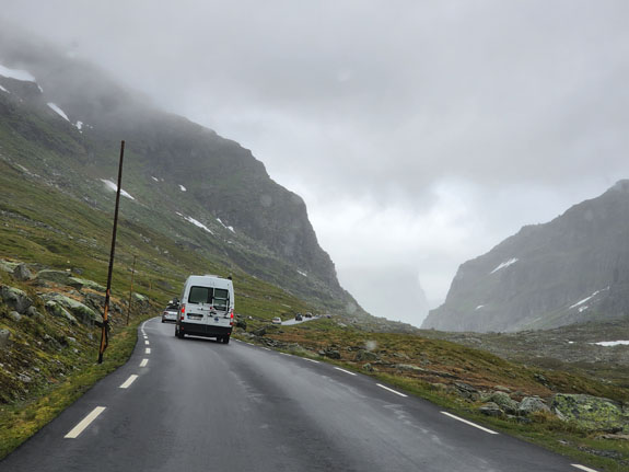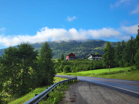 We end up chatting until midnight. It rains overnight. 7/7 I wake up at 4 am with only four hours of sleep, but it's light out and I have a long drive ahead, so I just get on the road. The destination is Bergen, but I take the longer route via Geilo because it is more scenic. I will basically spend the entire day driving, which I'm used to.
