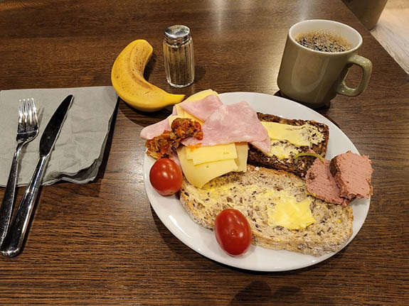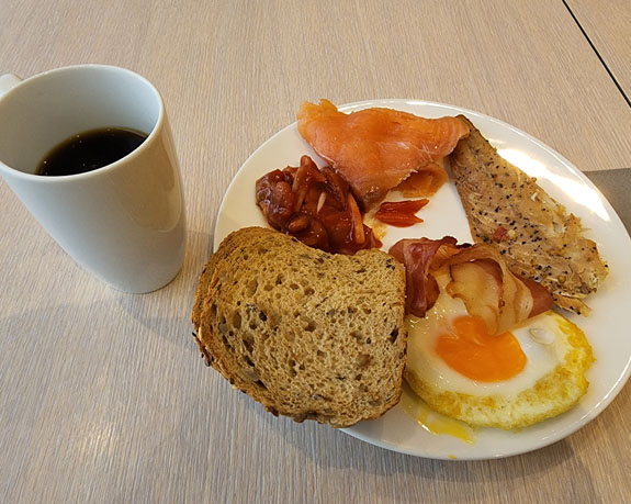 Breakfast is included and while I normally live on Zone bars when I travel (brought 80 of them on the trip), figured at least would get coffee. But everything looked so good I had to have some. And I don't normally even eat bread.