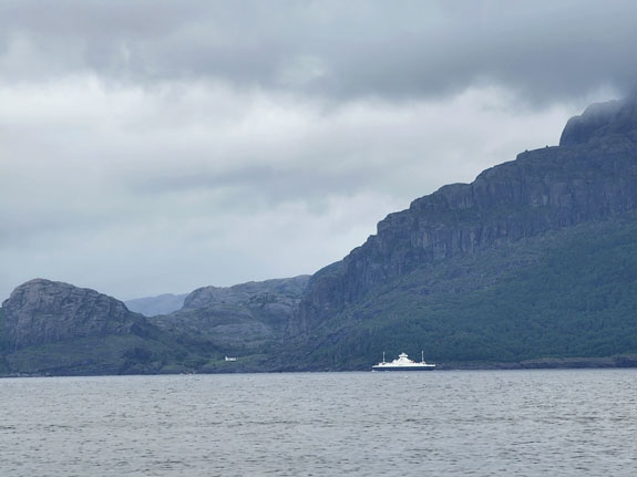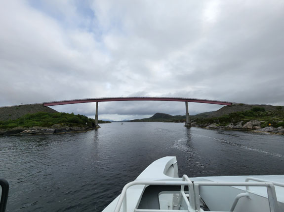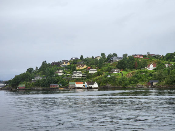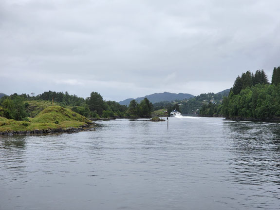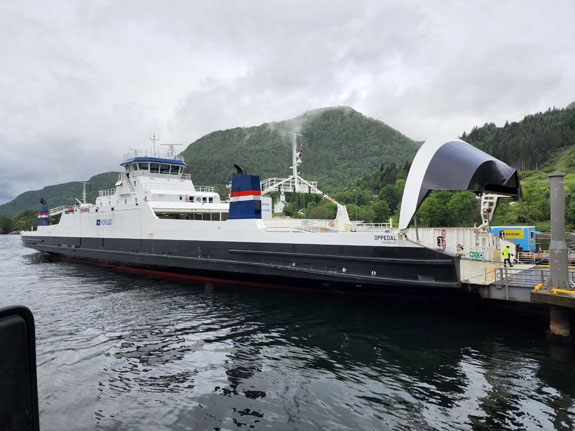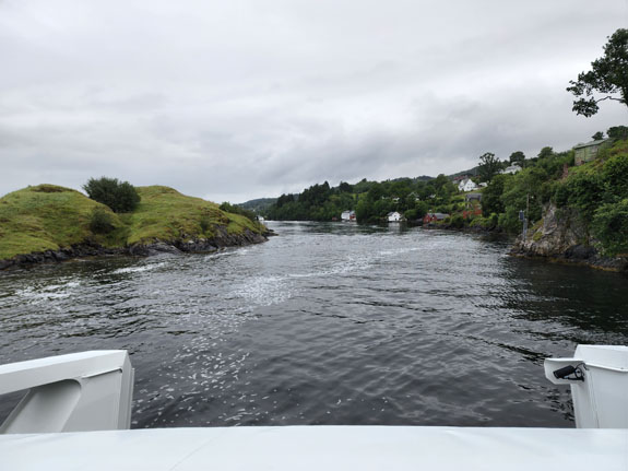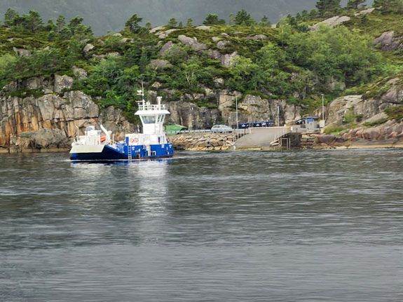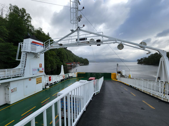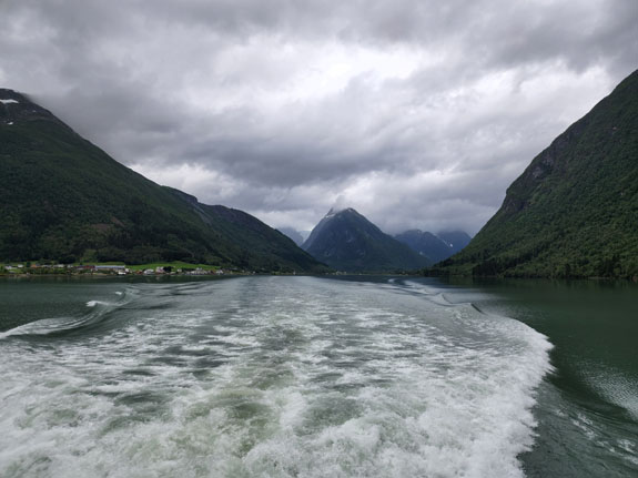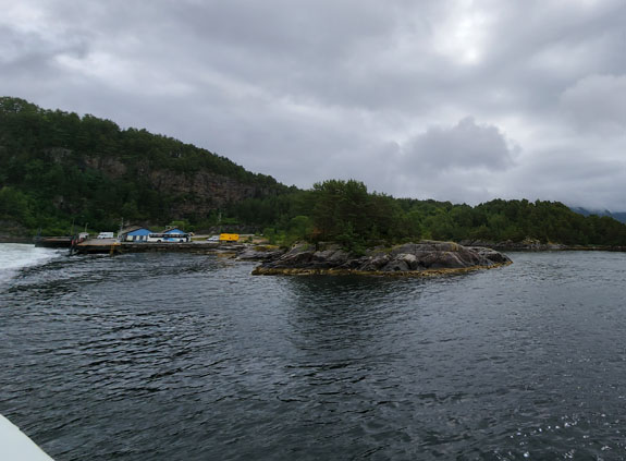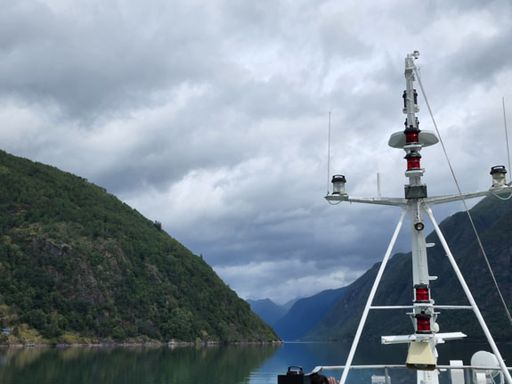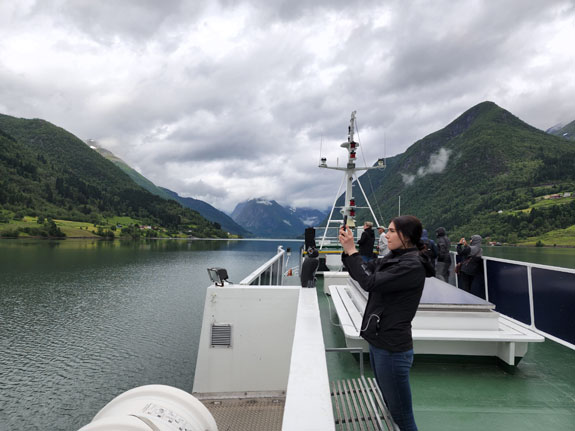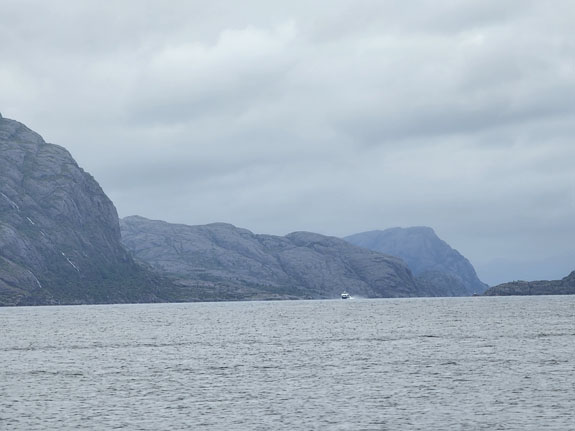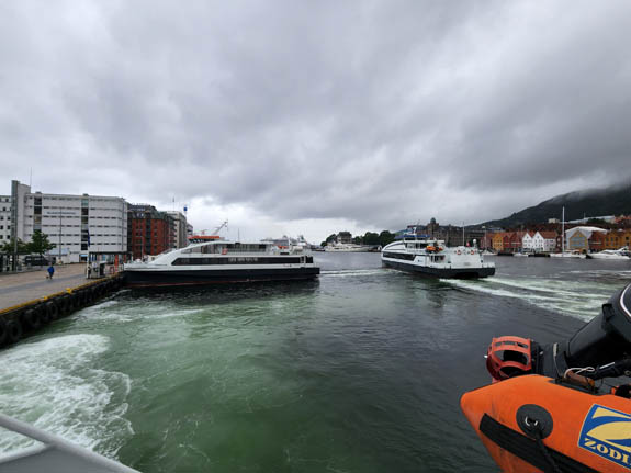 This portion of the trip is on a regularly scheduled catamaran, it's basically a water bus that makes several stops in the fjord. And it goes fast! About 30 knots. An impressive machine, built by Oma in Norway.