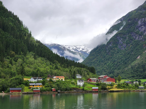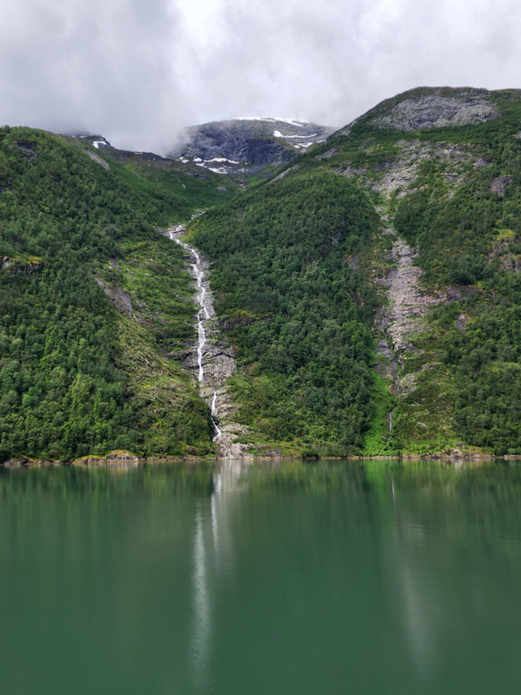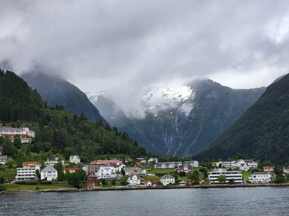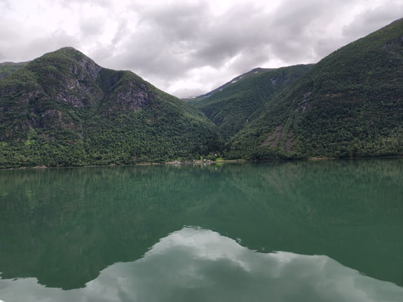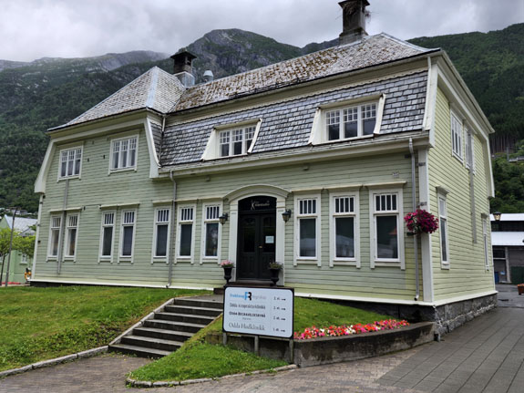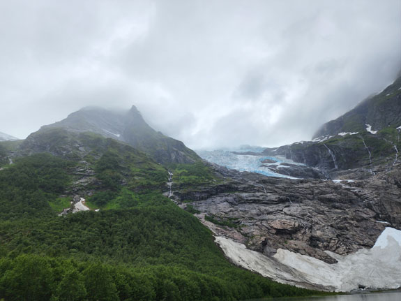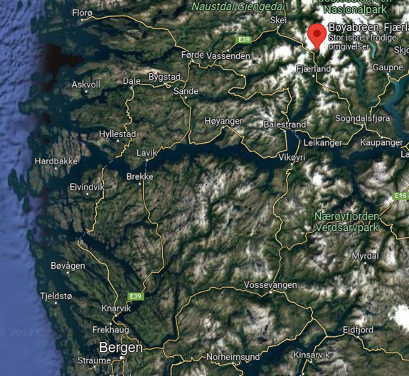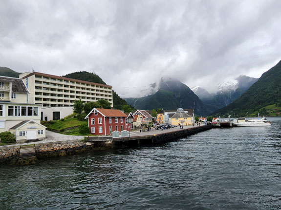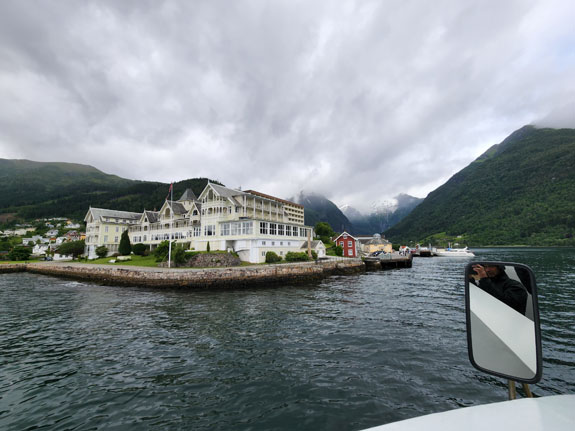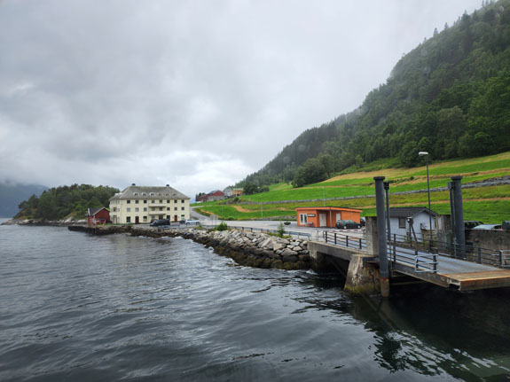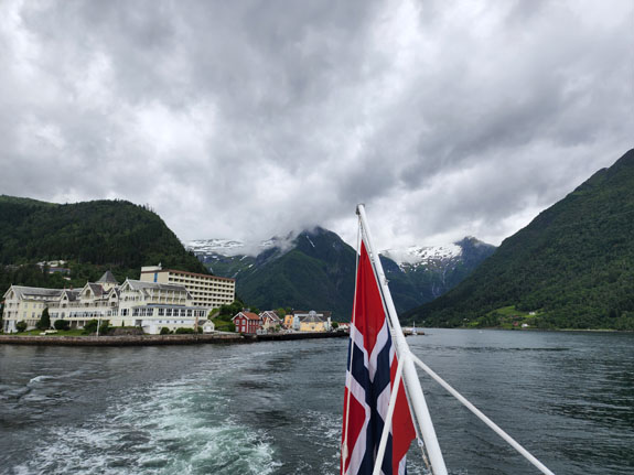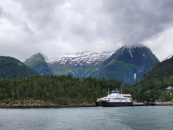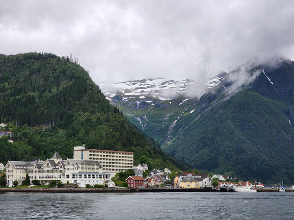 I actually pass out at about 5 pm, then wake up again at 9 and finish the update. There is so much to process that if I don't do it as I go, it would be overwhelming on return and basically wouldn't get done. 7/8 Today I'm taking a fjord and glacier tour. It departs at 8 am from a dock that is a five minute walk from the hotel. On the map you can see the fjord path from Bergen. There is a change of boats in Balestrand, then a bus up to the glacier.