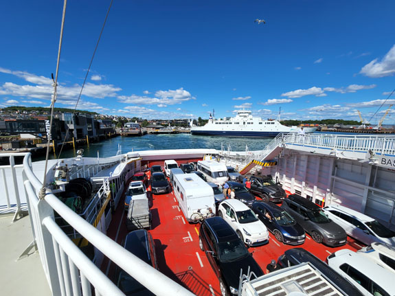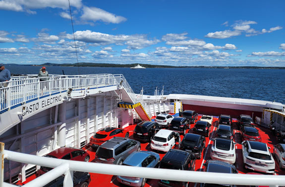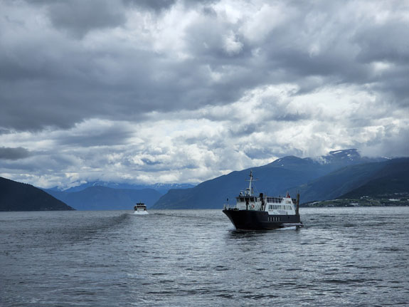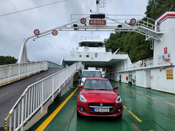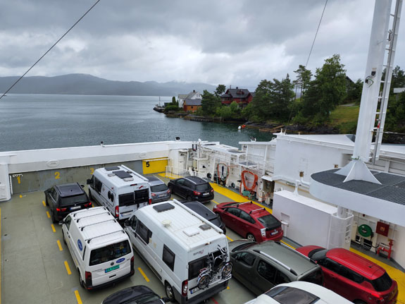 Now having sampled all available lodging options - Vegard's camper, hotels and tent camping, the former makes the most sense for the rest of the trip (except the last night I'm staying in a hotel by the airport since the flight out is at 7 am). It's a 1.5 hour drive back to Son, involving yet another ferry crossing. This is a busy route and the electric ferries are filled with cars. They are also quite nice inside.