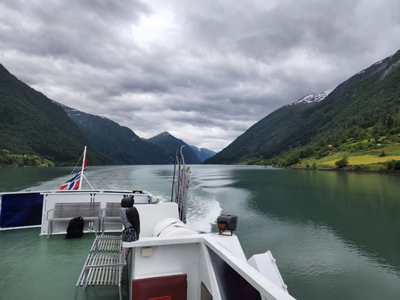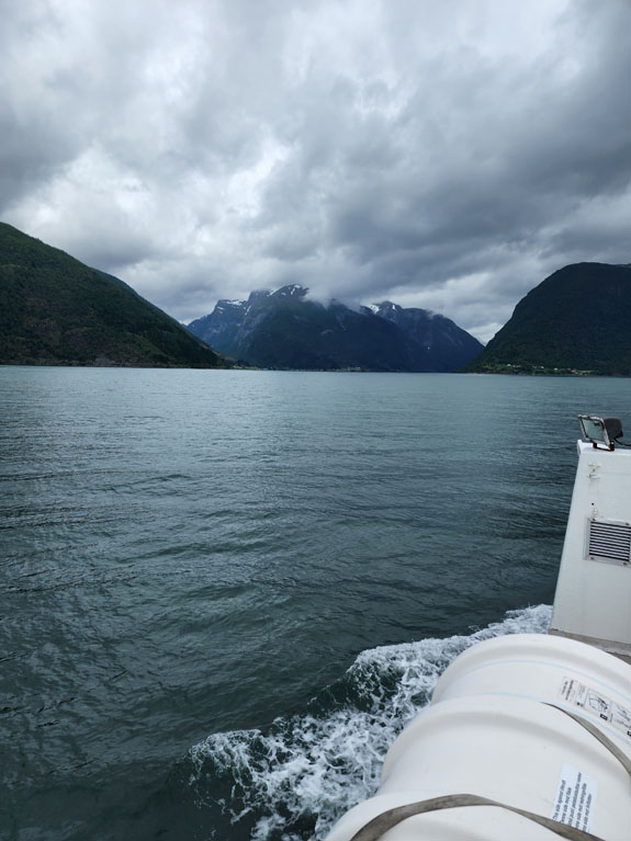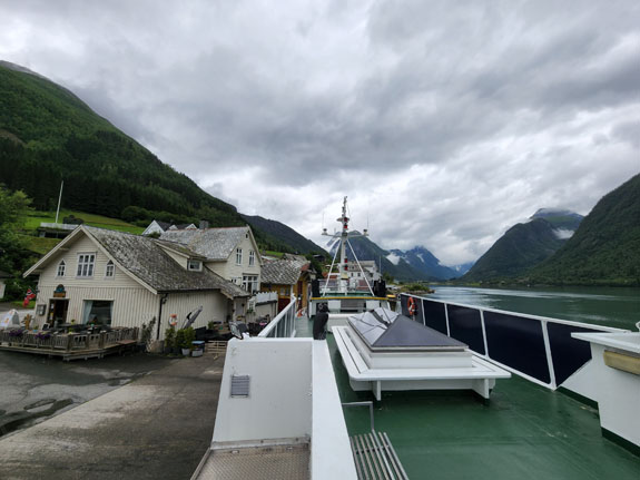 In Balestrand I disembark the big scheduled boat and board the smaller cruise vessel that takes us the rest of the way to Fjærland, where a bus will take us to the glacier.
