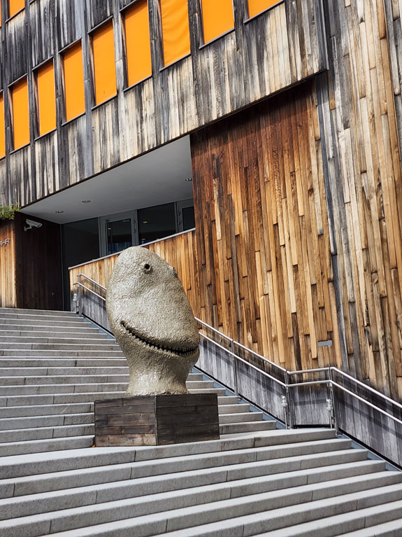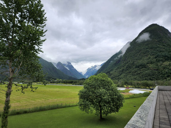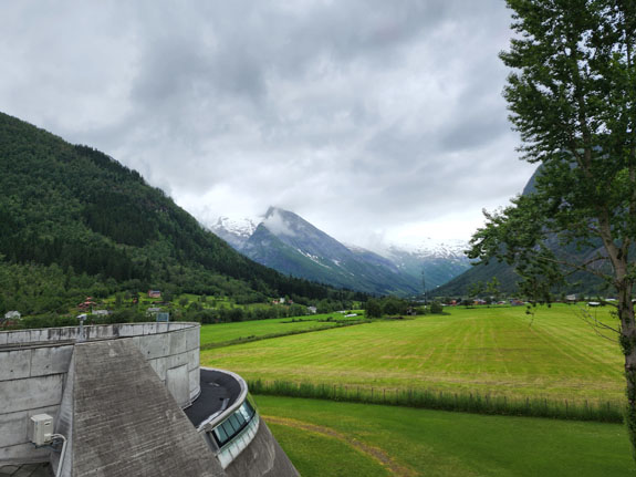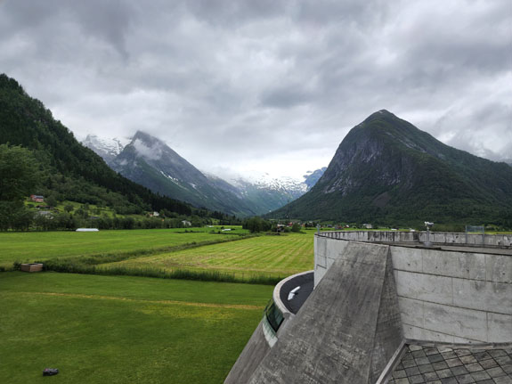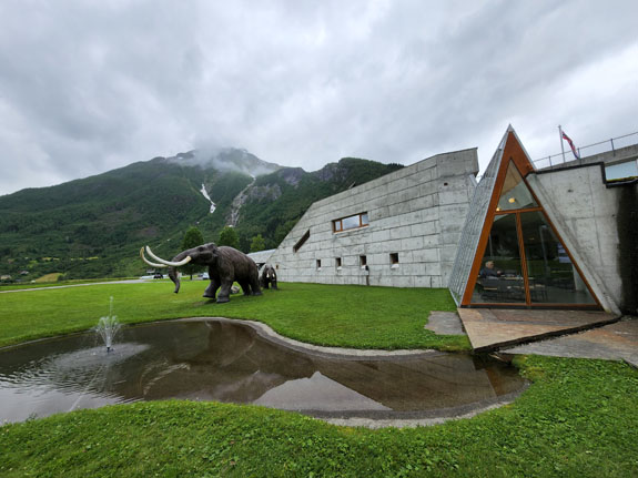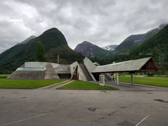 After about an hour and a half, we arrive in Fjærland where a bus takes us to a museum first. The building is really cool and somehow fits the landscape by contrasting with it, if that makes sense.