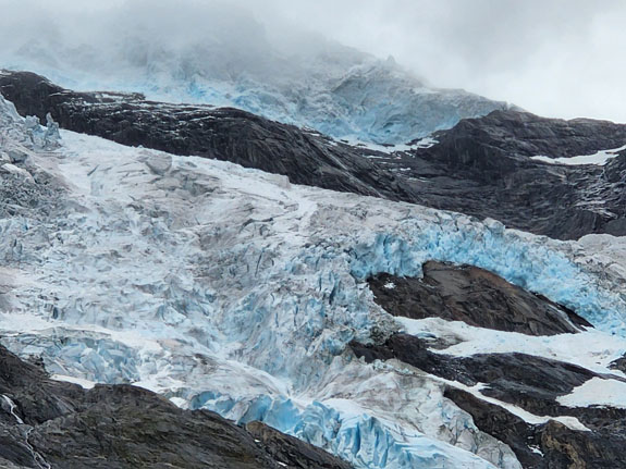 Then on to the glacier itself. This is the third one I've visited in my life, after New Zealand (page 3 of this blog) and Alaska (page 6). OK, fourth, as was pointed out to me - Mt. Hood has a glacier too but not much of it remains and for some reason I did't think of the climb as a glacier visit. The deep blue color of the ice is always fascinating to me. Like anti-lava flowing down the mountain.