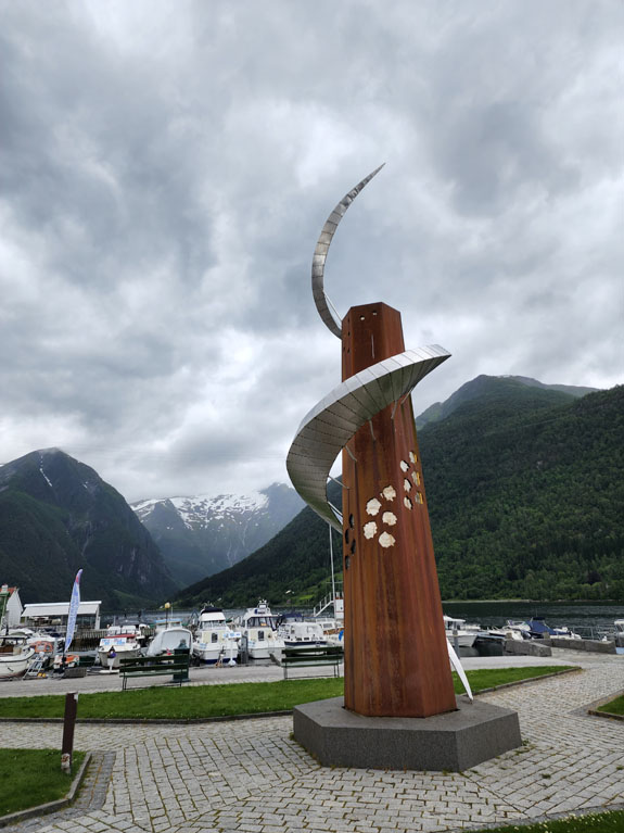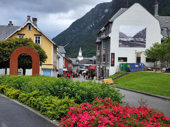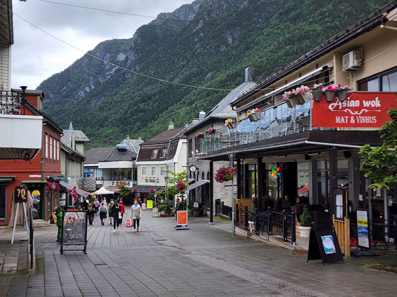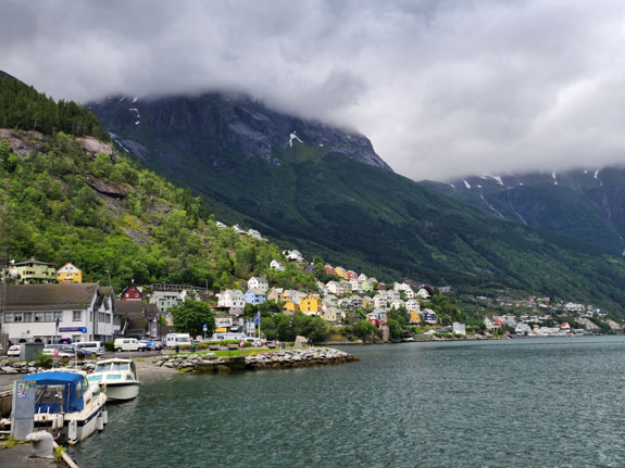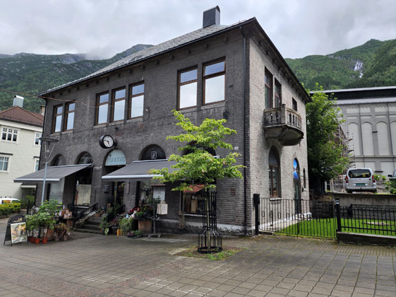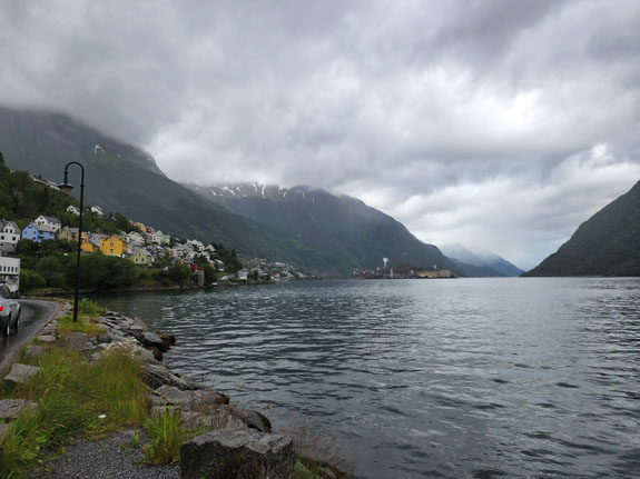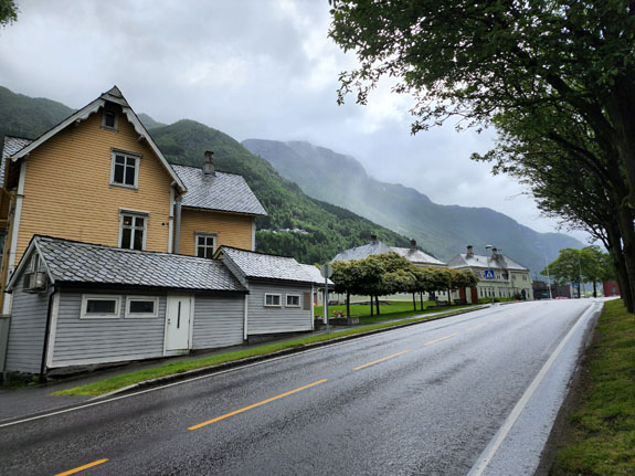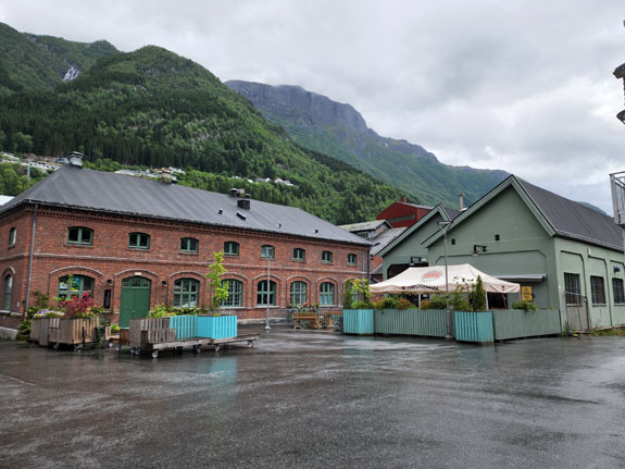 The town itself is very cool and scenic, with many shops and historic industrial buildings. I again contemplate kayaking here but it's still only 12C with a hefty breeze, and I have a long drive ahead. So basically I'm a fair-weather kayaker as it turns out. I'm ok with that. Below are some random pix of Odda, I have about a hundred more. When I first get here, a light rain is falling but it soon stops.