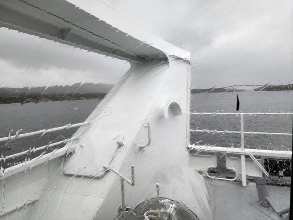 After the glacier, the small boat and then the big boat. Using the free wifi to upload the update. It's finally raining.