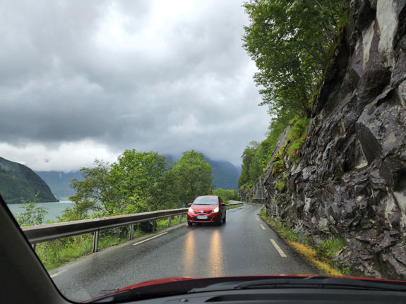 I don't know where I'm going or where I'm staying tonight. I'll figure it out when I get back to the car and on the road. General idea is to head back towards Oslo. It starts raining when we get close to Bergen.