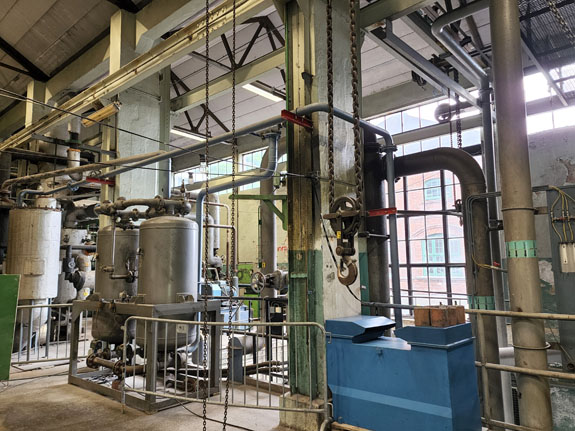 The first thing at the exit of the tunnel is an industrial plant of some kind. Yep, it still follows the color code.