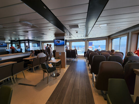 I didn't actually have room for the eggs but they looked picture-worthy for whatever reason. Then a short walk to the dock and onboard the boat. It'll be a 4-hour ride outbound but there is free wifi so an opportunity to make a partial update while experience is fresh. The harbor looks spectacular on departure.