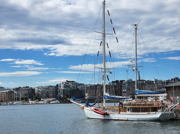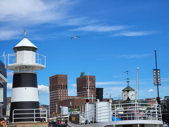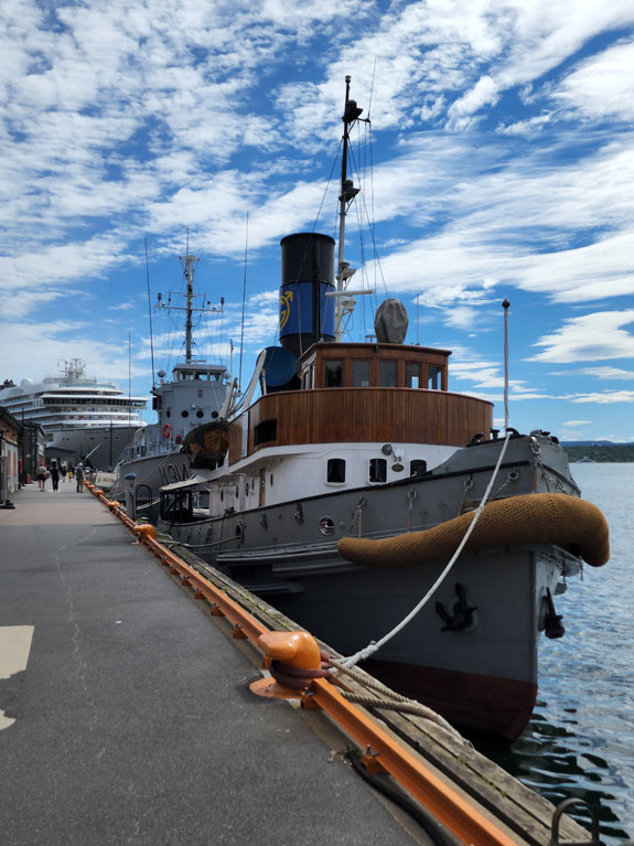 7/11 After the first full 8 hours of sleep, a slow relaxed start to the day, then a 2-hour boat ride to Oslo. The plan is to come back by train. It's a short walk down to the city center where the boat docks. It's low tide, but I've noticed that the tides don't do much here, and everything is designed and built with that assumption. Maybe 2' tops. That said, the low tide does expose a bit more ground and wildlife - in this case, starfish. These are about 3" diameter - much smaller than what we have in Oregon (those are 12" plus). So these are quarter scale by my standard :)