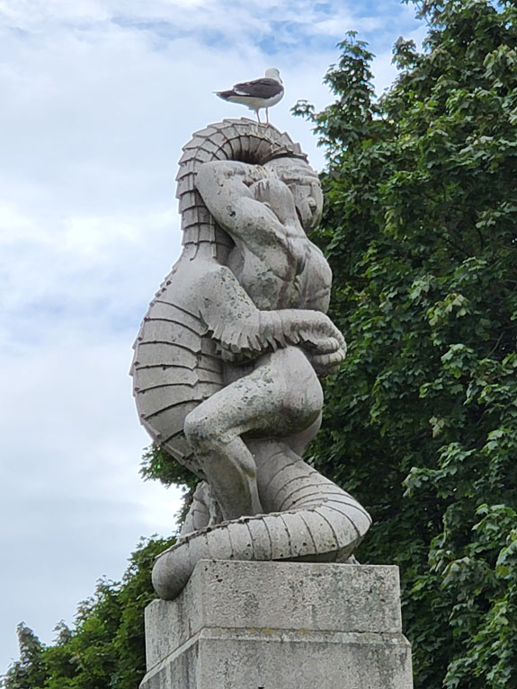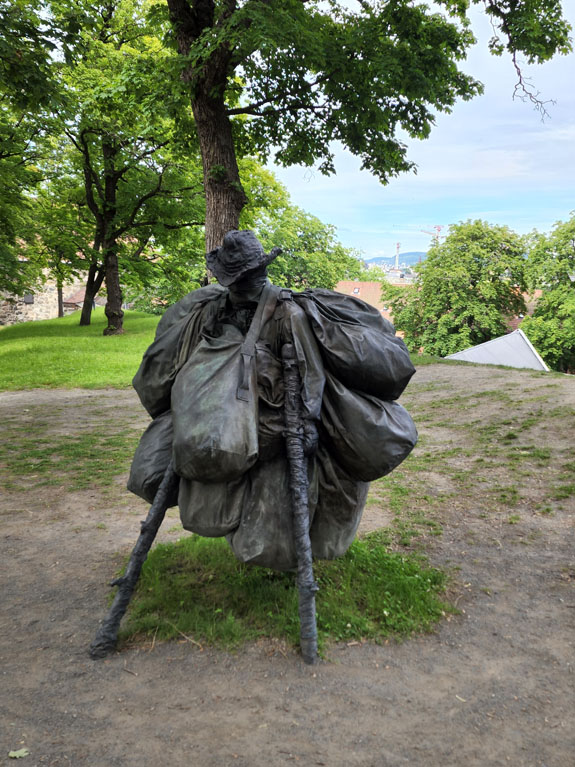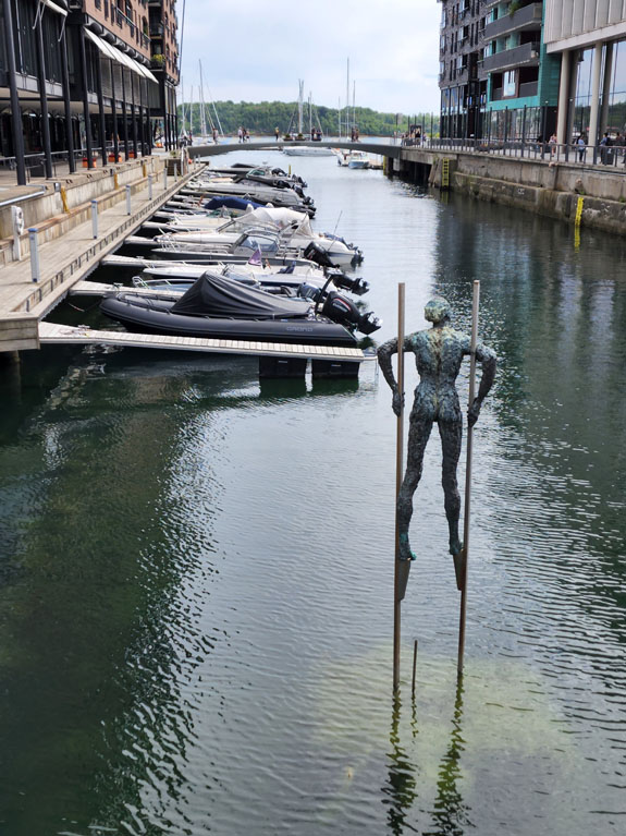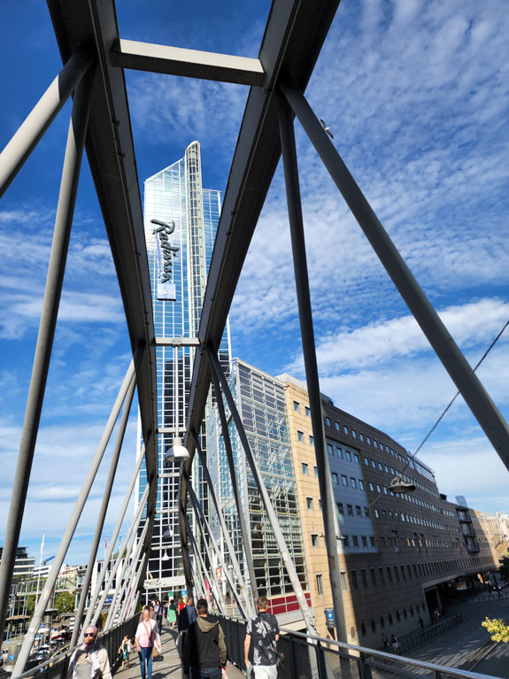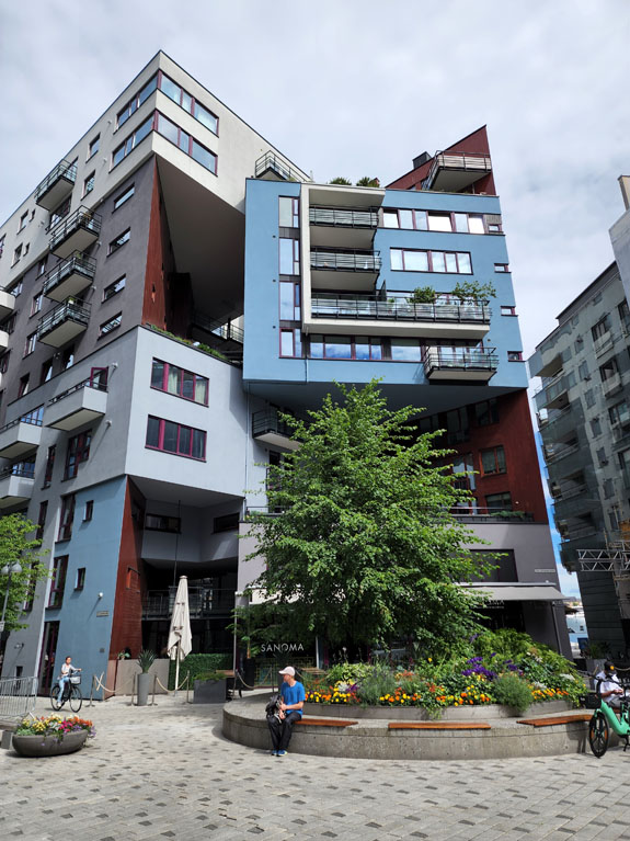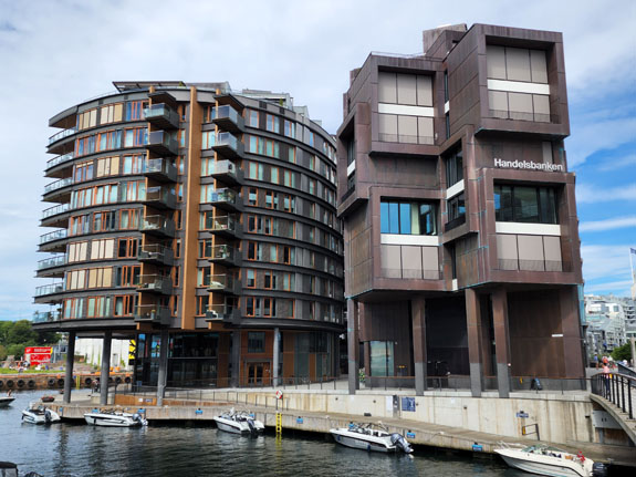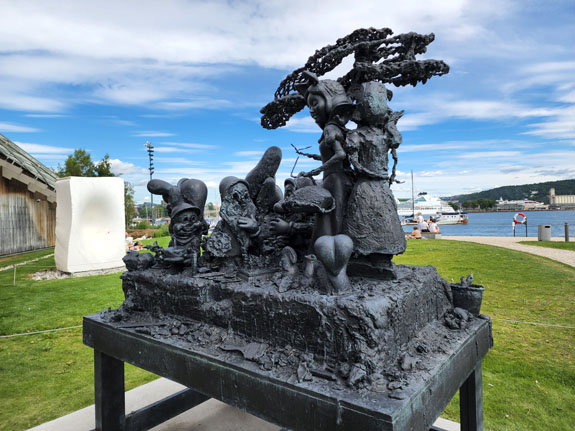Arriving in Oslo harbor, I'm eager to explore. It seems there is a 'new' side and an 'old' side. Seeing how my way back is via train and the train station is on the old side, I start with the new. The architecture is impressive. Every corner you turn is something new. There are lots of restaurants, cafes, and just beaches that people hang out at. Of course my pictures have few people in them, but that's just how I see the world. It's a thing. Just take my word for it, the people are there. I just avoid seeing them, and so you get a glimpse of the world as I see it. There are also sculptures everywhere, of all kinds. I have literally hundreds of pictures but only a few are presented here.