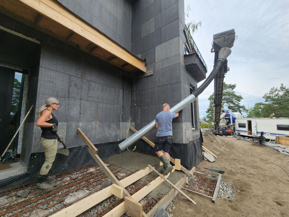 In the meantime, Vegard and Grete are making great progress on their house. Poured concrete today. It was interesting to watch.