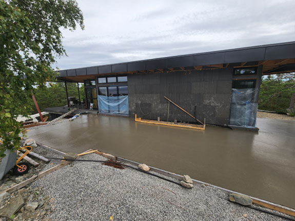Coming back it is now pouring rain, but it clears eventually. We celebrate the newly poured and cured concrete with a barbeque and some wine.