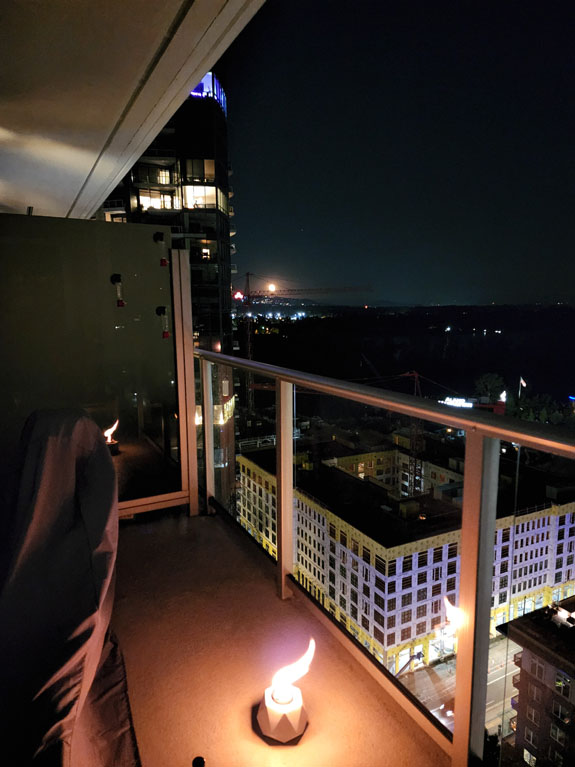 If you look closely at the picture below, you can see the moon peeking out behind the trees.
