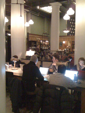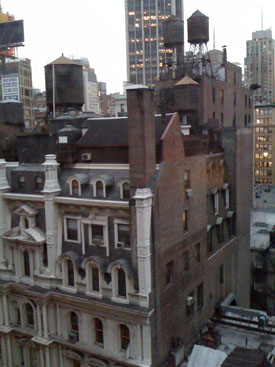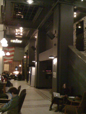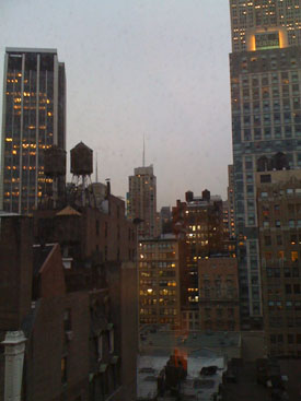 02/22/10-02/23/10 A quick visit to New York. It's been a while since we got to get away. The preferred plan is to do two foreign trips a year but as busy as we've been lately we chose to set that aside - a situation we need to remedy soon. In the meantime, since we were 'in the neighborhood' visiting family on the east coast, we thought we'd at least hop on the Acela train and spend a couple of days in Manhattan. It's foreign enough for now, I guess. I haven't been to New York in almost a decade and it's the first visit for M. So the plan for the trip was just to pop in, look around and see what's what (to the extent possible given the timeframe). My typical 'strobe light travel' in other words. Arriving by train meant a hotel near Penn Station would be convenient. We ended up booking a room at the Ace Hotel (they also have one in Portland so we've had a bit of a preview). Great place. Lots of charm and a bit of attitude (in a good way), with clean (but small) rooms, interesting fixtures, a convenient location and a Stumptown Coffee shop inside. The lobby is conducive to kicking back and socializing (or people-watching which we prefer). It always seems full. The room has a bit of a view, too.