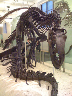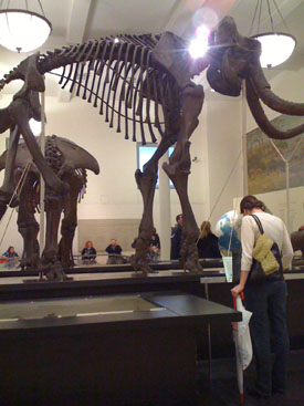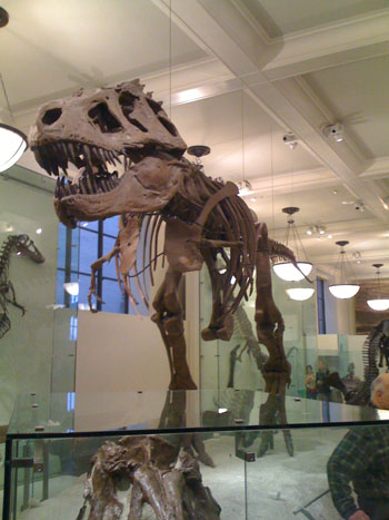 Then a quick ride back to the hotel to relax and get ready for the next day, just as it's finally starting to rain. M tuns on the TV and flips to BBC America only to find a Top Gear episode starting. I generally don't watch TV but this I can deal with :) In the morning the rain is there to stay so the plan is very low-key. A bit of shopping on 5th Avenue just a few steps outside the door then a subway ride to the Natural History Museum to see the dinosaur stuff. I love the dinosaur exhibits - looking at the skeletons it's neat to see the mechanics of how the bones are arranged into a functional whole, how the entire creature is configured for its mission in life (which is basically acquiring food and consuming it while avoiding becoming food for others). Yes, I'm a geek.