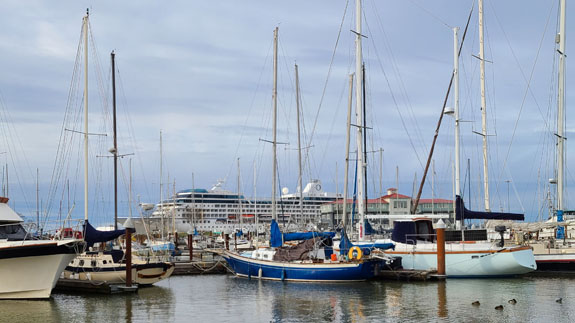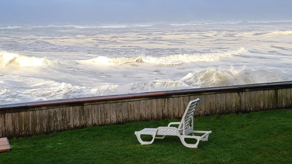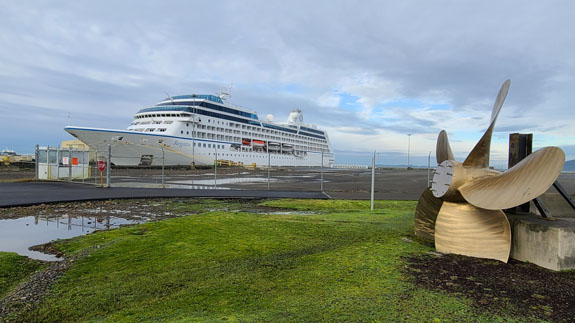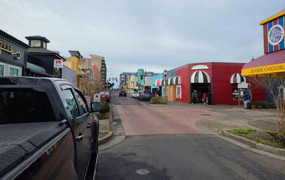 The cruise ship is just parked there, and to me the last picture is symbolic of the times. Then south along the coast, with a brief stop in Seaside.