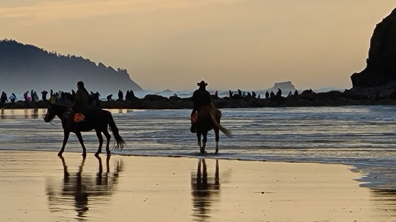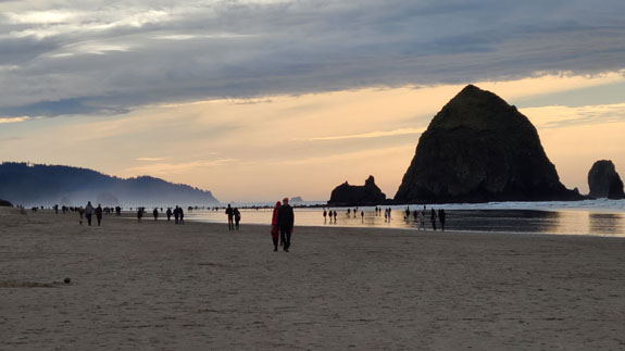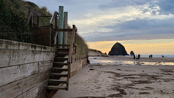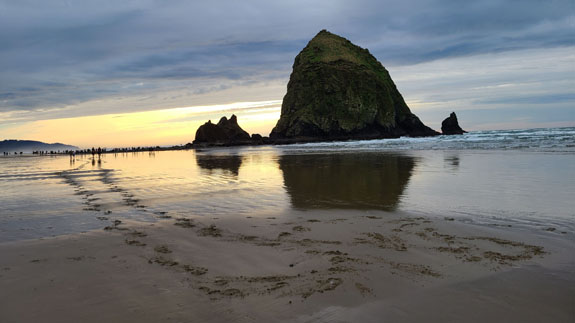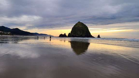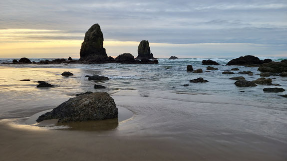 Next stop is Cannon Beach. This used to be a favorite place to visit when I first moved to Oregon 22 years ago, but I haven't been here in some time. I booked a beach-access room at the Schooner's Cove Inn. Turned out to be a memorable stay. On arrival the tide was low and I did a couple-mile-long beach walk.