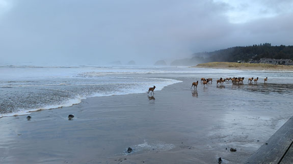 And then a surprise - as I was enjoying my morning coffee and watching the waves, a herd of elk showed up and dashed across the beach right in front of me! A short video here. They timed it pretty well between two sets of waves rolling in. This was so far outside the ordinary routine that I am still smiling every time I think of it. Which is the goal of this trip, to accumulate experiences which I will remember.