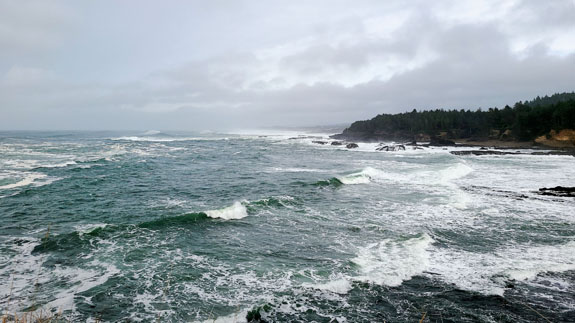 The waves at Depoe Bay were particularly impressive - comparing them to the hotel on the cliff, the biggest ones had to be over 40' tall.