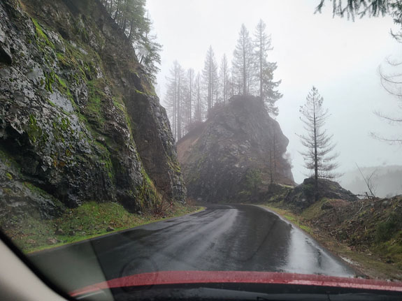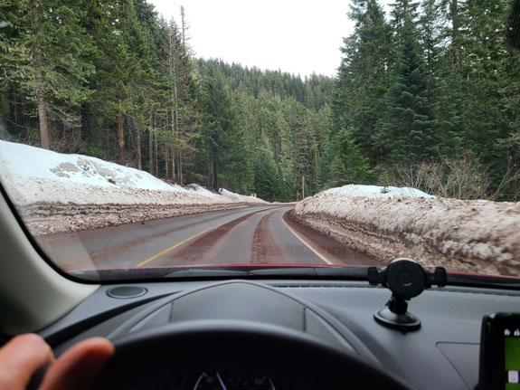 And then I'm in the mountains and forest, with lakes, streams, bridges, and moss-covered trees lining the twisty road. And as the altitude increases I start to see some snow.