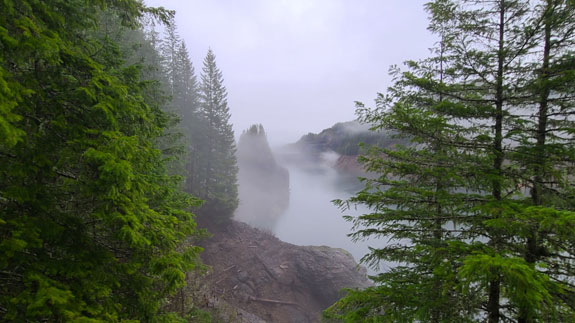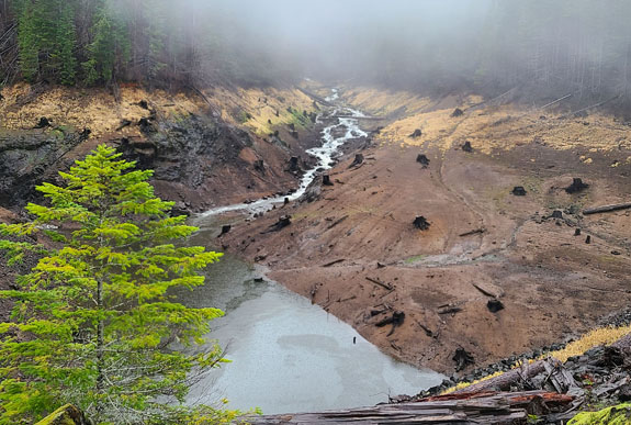 While here I decide to explore a more natural hotspring setting, the Terwilliger spring at Cougar Reservoir. The area had extensive fires this summer and some roads are still closed as they clear the burned trees and debris. Technically the road to the spring was closed, but the flagmen waved me through so on I went, in pouring rain and occasional fog. The area is stunning.