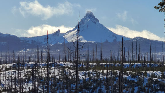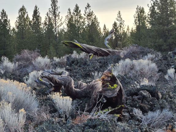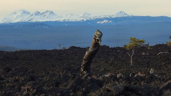 The garden has an odd post-apocalyptic zen vibe to it. Perfect resonance for my mood of late. It is not something you would expect to find in a place like this, yet there it is. After checking out of the hotel, I head towards Bend. My plan is to try skiing at Hoodoo tomorrow, for the first time in over 20 years, but today I want to head south a bit. Driving past Hoodoo and then Sisters, the scenery continues to change.