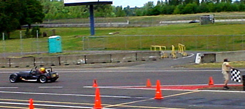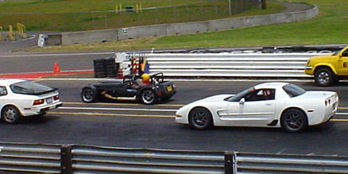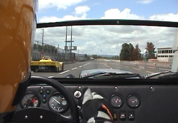 6/29/02 A tri-club track day at PIR hosted by the Porsche club this year. VERY crowded, I think 110 cars. The advanced group had a lot of people who didn't belong there, really. I did a lot of passing. The day was weird in many ways. It was pouring rain the day before, and it was still pouring when I briefly woke up at 2 am. I was completely ready to take the M Coupe, having pre-paid the fee. Roof, tread on the tires and ABS sounded good. The Elise was the backup - at least it has a roof. In the morning I woke up to some clouds but the rain had stopped. Good, Elise time then. The problem is that the Elise was up on the lift. And just as I got up at 7 am, a power outage hit. The power company estimated the fix to take up to 2 hours. I had to be at the track by then. I studied the sky in all directions and decided that the Westfield was OK. Brought a towel just in case.... The weather turned out just fine. The crowded conditions meant that I only got 3 sessions in, but that also was a blessing in disguise since the Westfield started spraying oil all over the engine bay. THAT will be a fun one to try and fix, no doubt. On the plus side, I FINALLY broke the 1:30 barrier and recorded it on video! So it is now official. After 2 years of trying... The car has much more to give, I just don't yet have what it takes to ask it. YET. No problem, seeing how I broke minute-thirty on my fourth track session ever in the car. Seat time will help :) Also, some fiends took a few pictures and video from outside (thanks, Roy and Julia!), so I put together a quick 'mixed' video clip. The Westfield looks tiny lined up next to 'normal' cars...