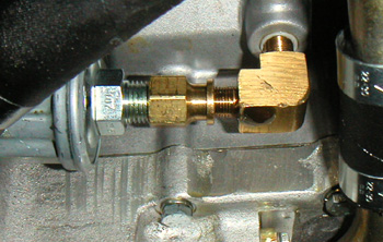 6/30/02 Got the Beast up on the rack to see what is spraying oil. Turns out the oil pressure sensor coupling is POURING oil out. I'll need to come up with something different.